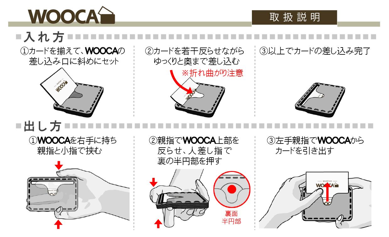 WOOCA(ウーカ)名刺ケースは、カードの入れ方と出し方が個性的です。