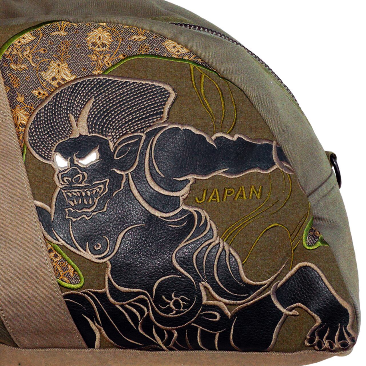 ハンマーヘッドバッグ 大きいバッグ 大きいカバン カーキ 仁王像 風神雷神 Bosshiro